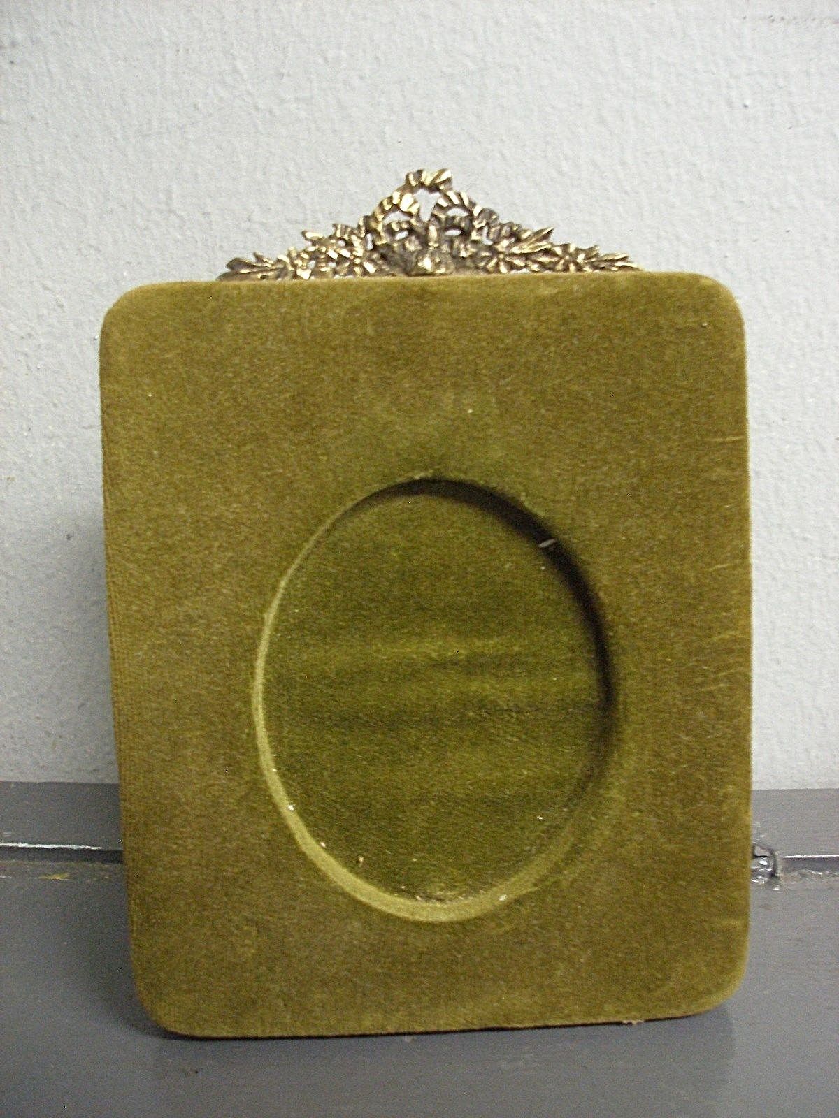 Title (ebay affiliate link): ANTIQUE VELVET CAMEO PICTURE FRAME OVAL OPENING ORNATE BRASS LATTICE FINIAL