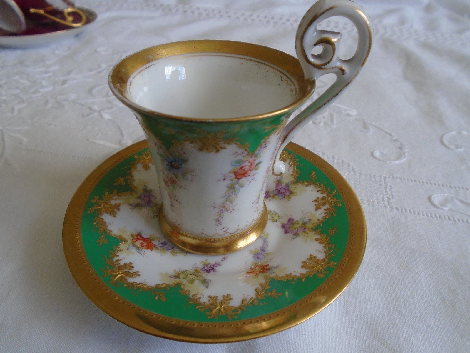 GORGEOUS T & V LIMOGES DEMITASSE CUP AND SAUCER