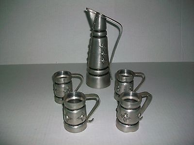 Vintage S Borg Set Mid Century Pewter Pitcher Cups Mugs Steins Hand Made Norway