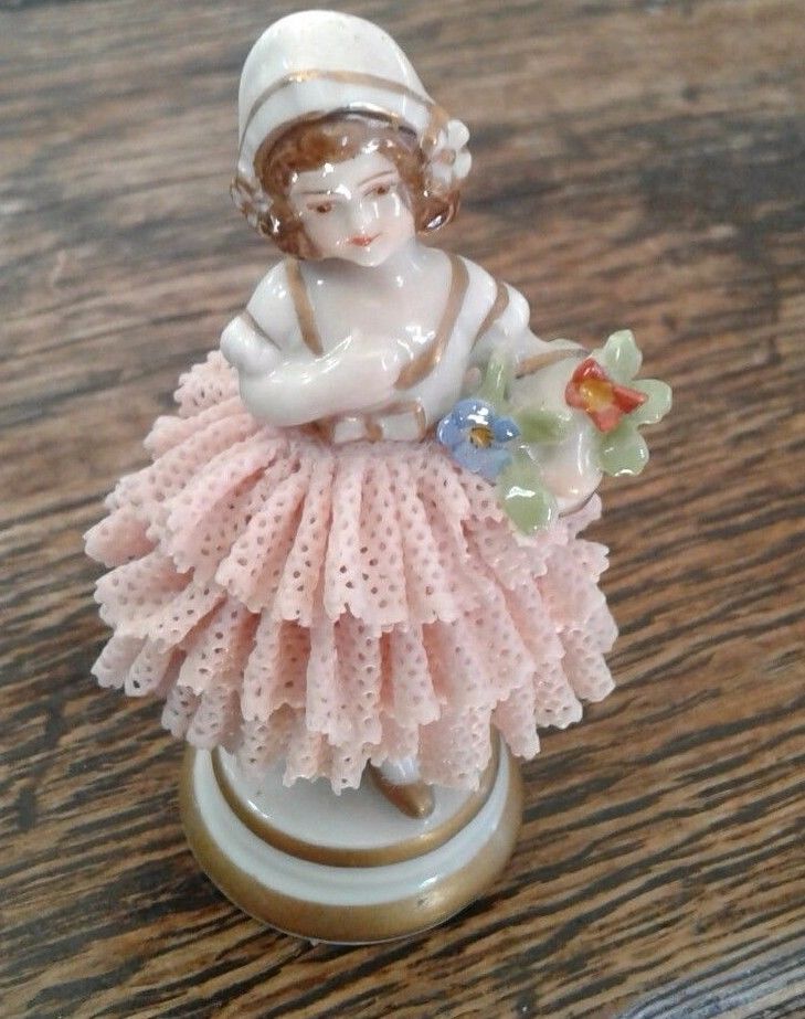 Beautiful Porcelain Dresden Style Lace Figurine Germany