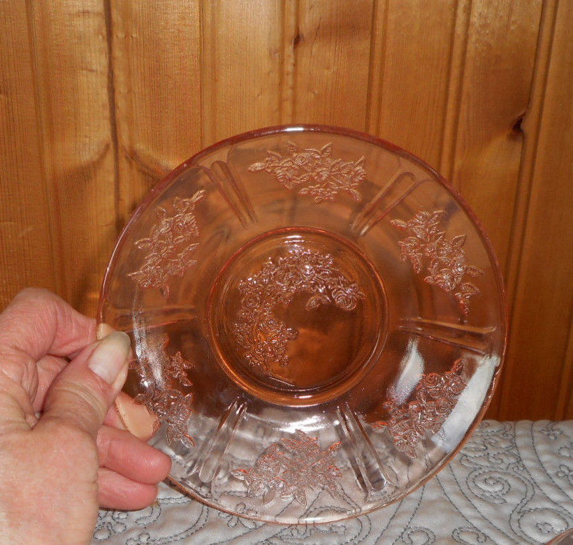 Title (ebay affiliate link): 2 FRUIT/ SALAD BOWLS PINK DEPRESSION GLASS SHARRON CABBAGE ROSE PATTERN