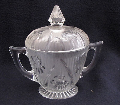 Jeannette IRIS AND HERRINGBONE SUGAR BOWL With LID - Crystal