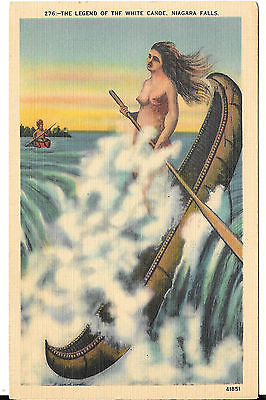 POSTMARKED 1938 THE LEGEND OF THE WHITE CANOE - NIAGARA FALLS POSTCARD