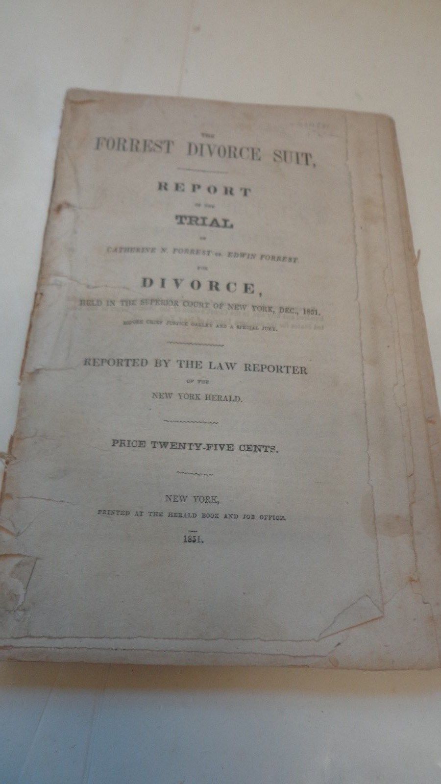 Title (ebay affiliate link): 1851 Report on the Forrest Divorce Case Trial Edwin Forrest famous actor