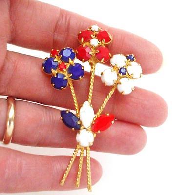 SWEET VINTAGE RED WHITE & BLUE MILK GLASS FLOWER BOUQUET PIN PRONG SET STONES