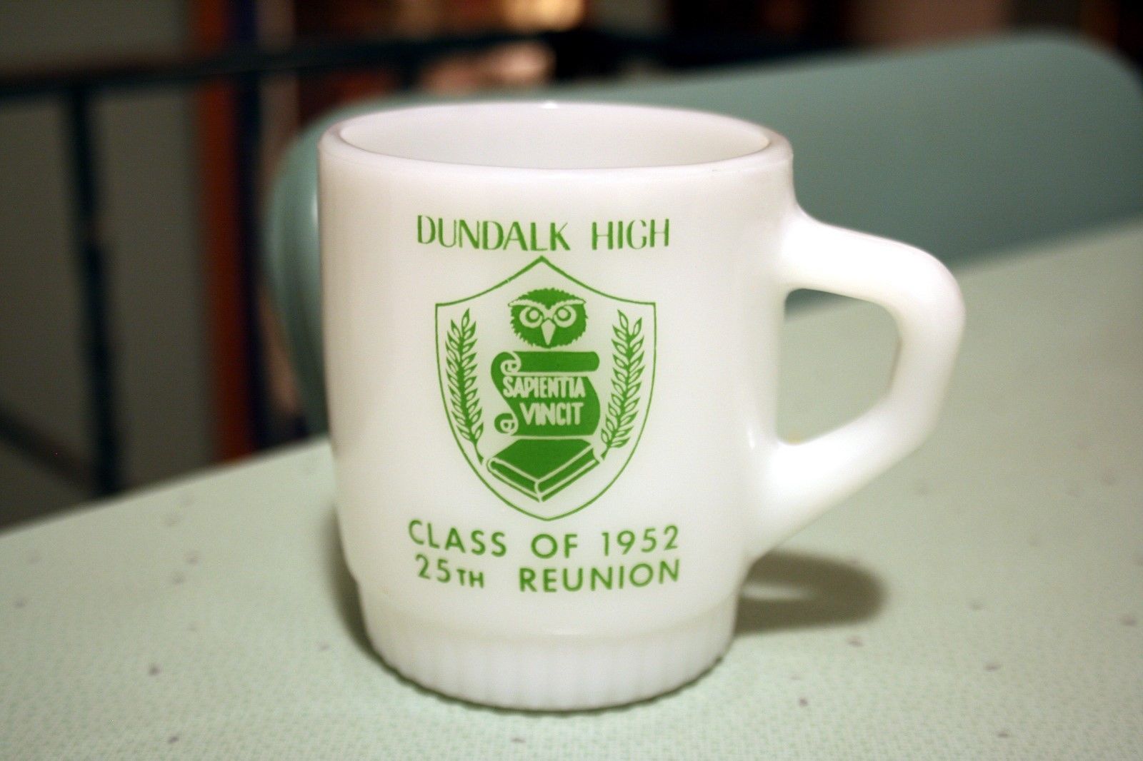 Vintage Fire King AH Milk Glass Dundalk High School Class of 52 25th Reunion Mug