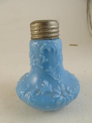 Antique Blue Milk Glass Daisy Embossed Salt & Pepper Shaker Victorian EAPG Vtg