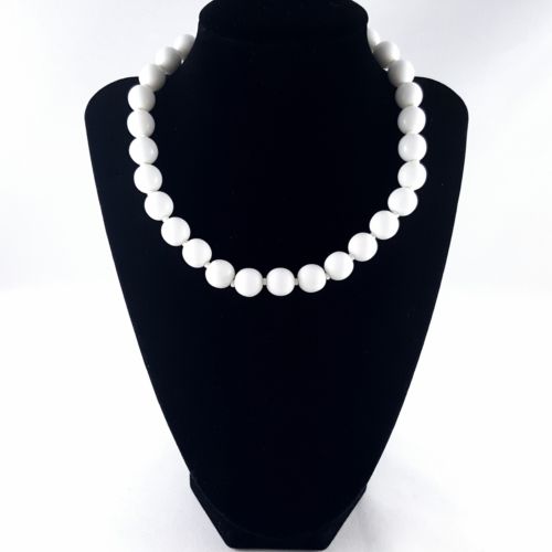 Signed MIRIAM HASKELL Vintage 16" White Milk Glass Bead Necklace Y152