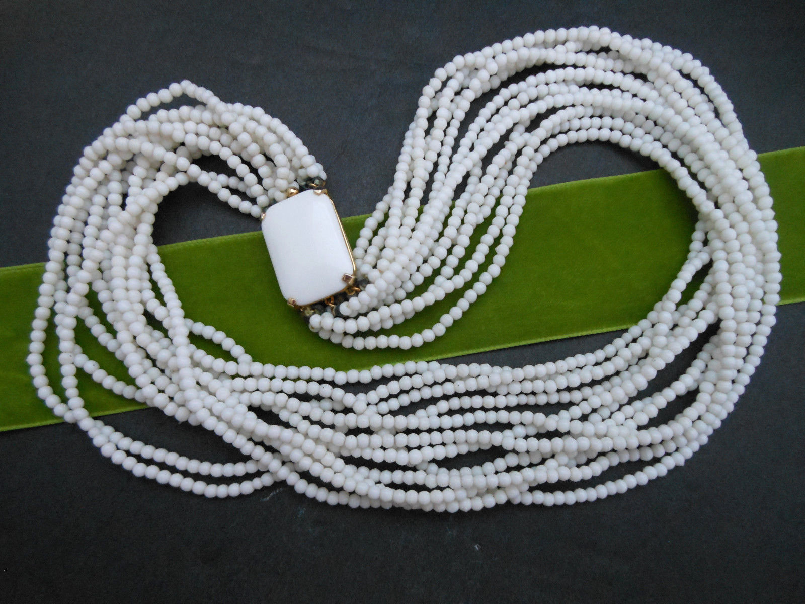 Title (ebay affiliate link): Vintage CASTLECLIFF Necklace White Milk Glass Bead 12 Strand Torsade Gold Tone