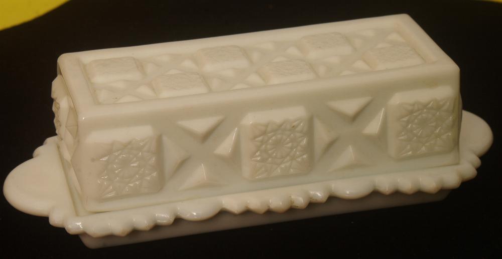Title (ebay affiliate link): Westmoreland Milk Glass, Opaque White, Old Quilt 1/4 pound Butter Dish & Cover