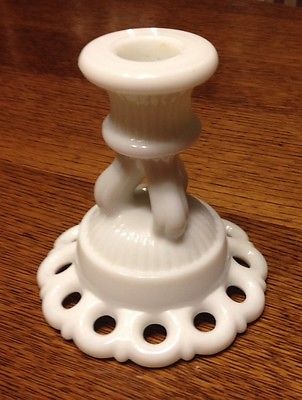 Title (ebay affiliate link): Lacey Doric Westmoreland Vintage White Milk Glass Candle Holder Candle Stick