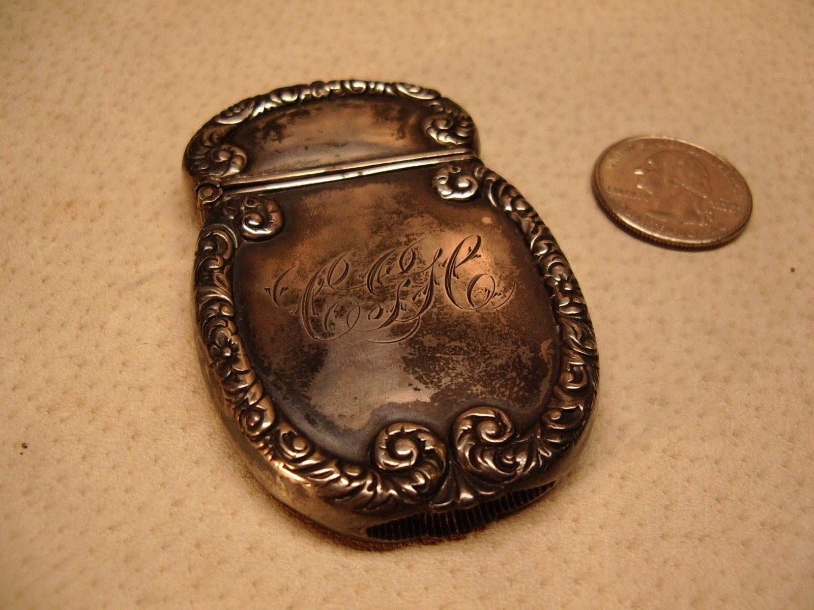 Title (ebay affiliate link): ANTIQUE STERLING SILVER VESTA MATCH HOLDER SAFE W/ Monogram