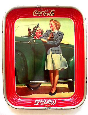 Title (ebay affiliate link): VINTAGE 1942 "DRINK COCA-COLA" TWO GIRL AT CAR TRAY