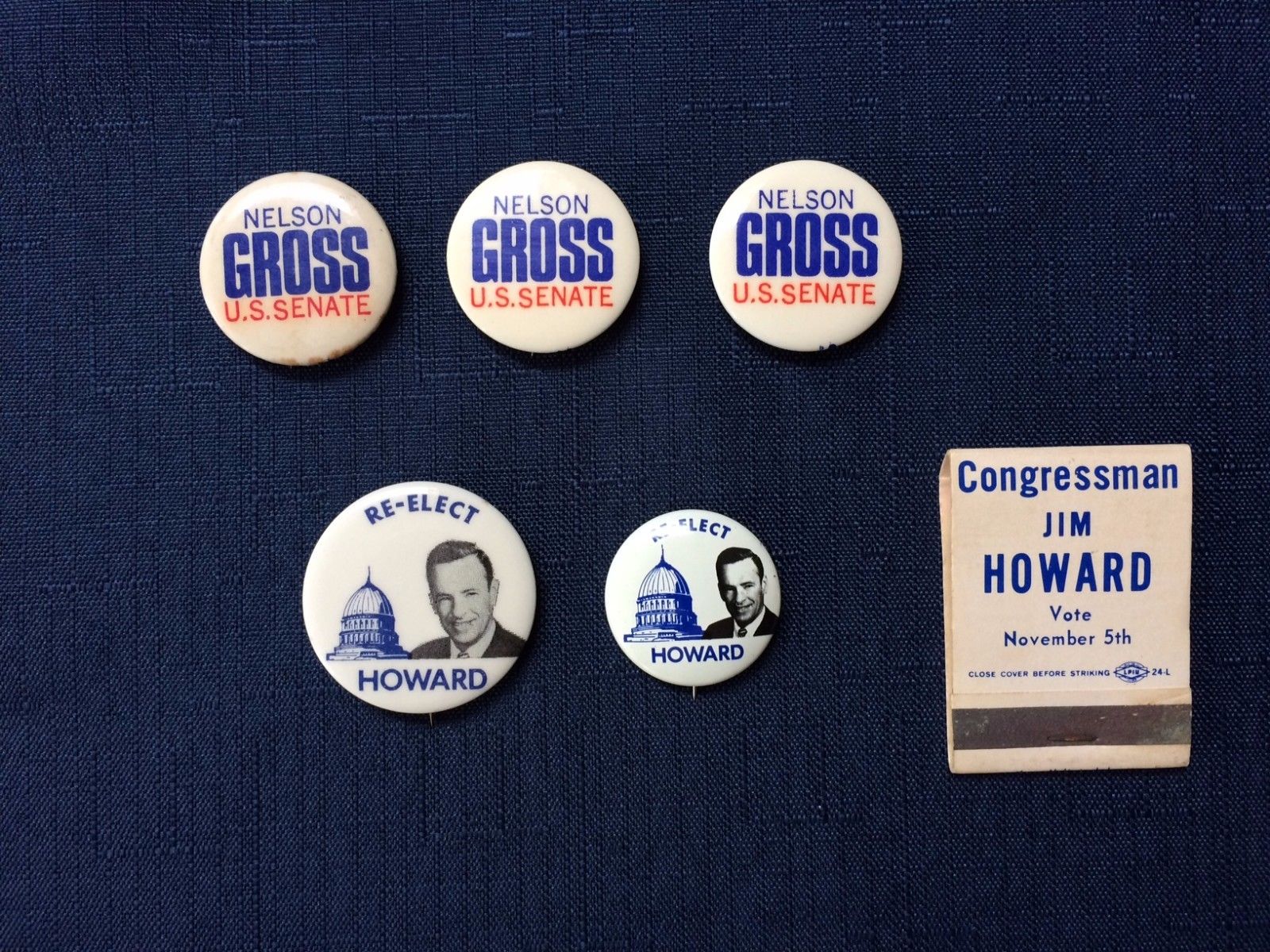 Title (ebay affiliate link): Vintage NEW JERSEY Political Pinback Buttons Lot J.HOWARD NELSON GROSS Matchbook
