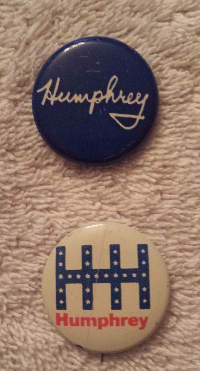 Title (ebay affiliate link): 2 Vintage 1960s Hubert Humphrey Political Campaign Pinback Buttons