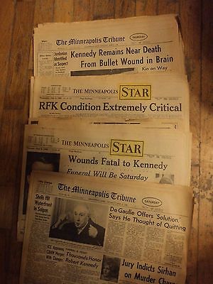 4 VINTAGE Robert F Kennedy ASSASSINATION NEWSPAPERS june 5, 6, 8 1968