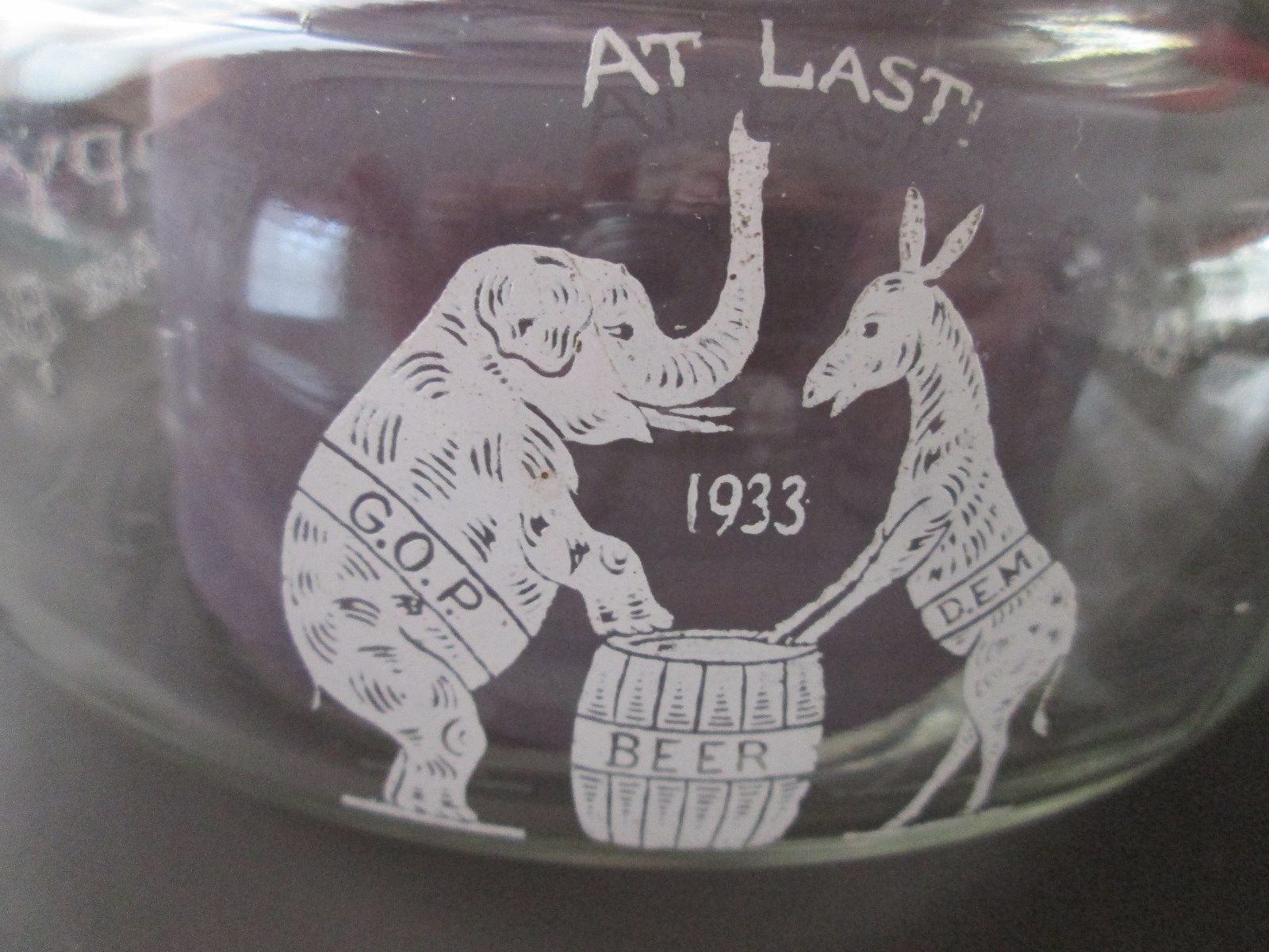 Title (ebay affiliate link): Prohibition Era "HAPPY DAYS ARE BACK AT LAST" 1933 REPEAL Glass Fish Bowl RARE!