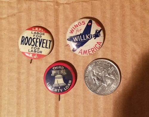 Title (ebay affiliate link): LOT 3 PRESIDENTIAL CAMPAIGN PINS PINBACK BUTTON WILKIE WINGS, ROOSEVELT, LIBERTY