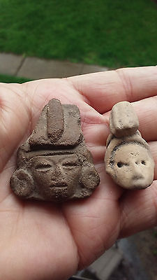 2 Great Pre Columbian Heads wearing Headress Guaranteed AUTHENTIC