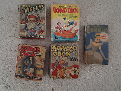 Lot of 5 Vintage Disney Donald Duck Uncle Wiggily Cinderella Big Little Books