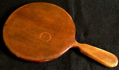 c1900 mahogany hand mirror, beveled, 12"