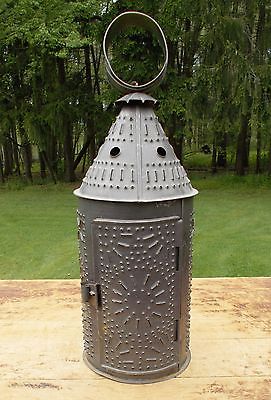 Primitive Style Early Farm House Lighting Punched Tin Taper Candle Lantern Light