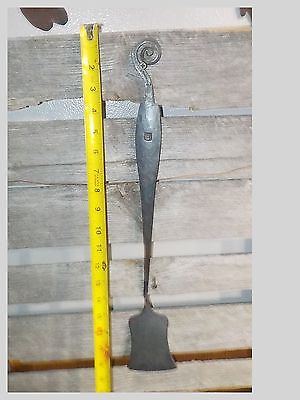 ANTIQUE IRON FORGED SPATULA-19 & 1/2" LONG-SIGNED-HEARTH UTENSIL-FIREPLACE-PEEL