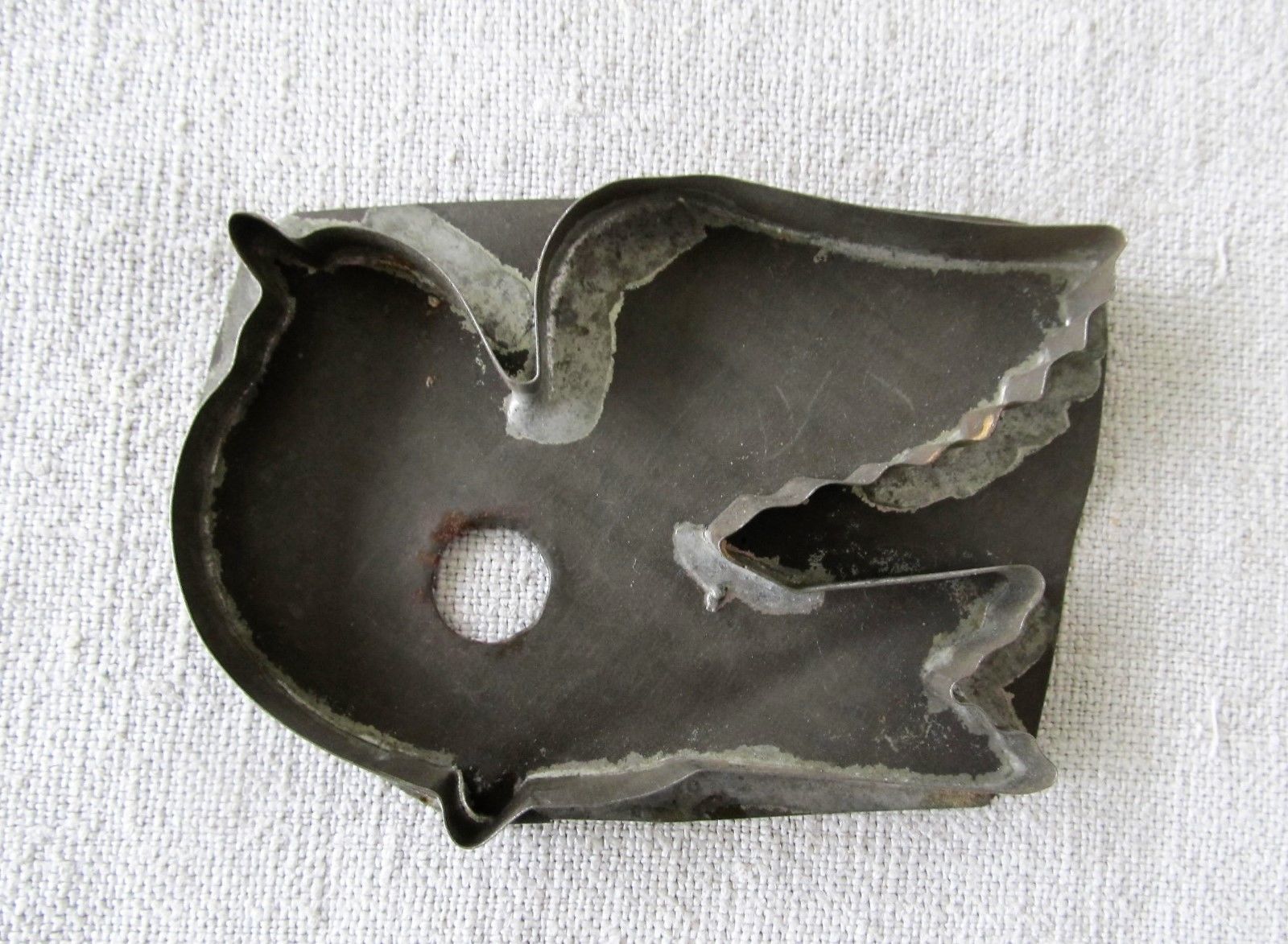 Title (ebay affiliate link): Antique Primitive PA TIN COOKIE CUTTER BIRD DOVE Flatback 4 1/2" Dark Tin