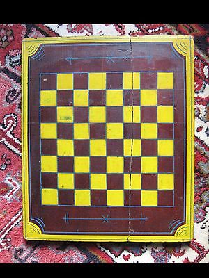 ANTIQUE PRIMITIVE WOODEN CHECKERBOARD MUSTARD,BROWN & LIGHT BLUE