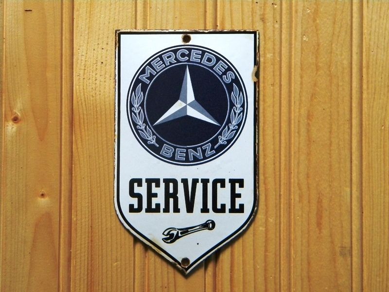 MERCEDES BENZ SERVICE OLD PORCELAIN SIGN ~5-3/4" x 3-3/8" DAIMLER OIL AMG GAS CL