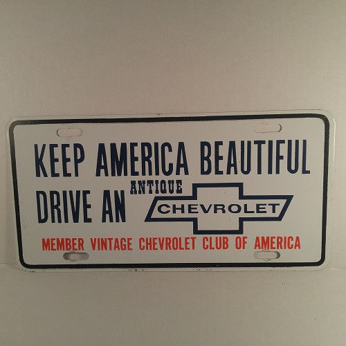 Title (ebay affiliate link): Antique Chevy Member Vintage Chevrolet Club of America License Plate America USA