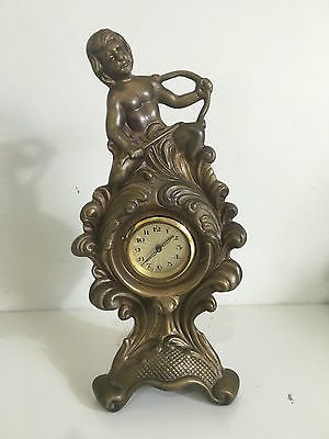 Vintage German Painted China Cupid 12h Dial 1 Day Novelty Clock