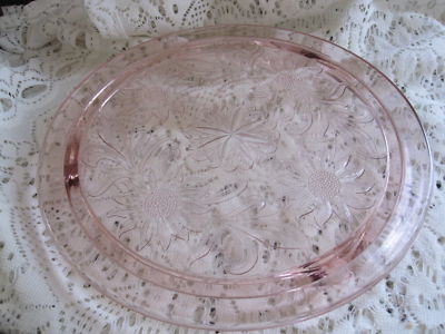 Vintage Pink Depression Glass SUNFLOWER Cake Plate