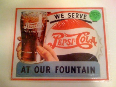 Title (ebay affiliate link): Vintage Metal Pepsi Cola Sign reproduction