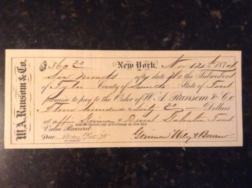 Title (ebay affiliate link): Nice Promissory Note, to W.A. Ransom & Co., 1874
