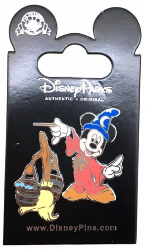 Title (ebay affiliate link): 2009 Disney Sorcerer Mickey and Broom Set of 2 Pins Rare W3