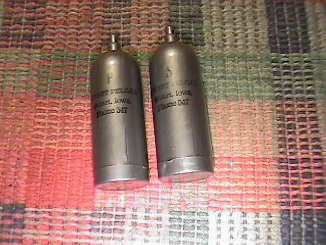 50S PEL-GAS STUART IOWA GRAY "TANKETTES" SALT AND PEPPER SHAKER !!