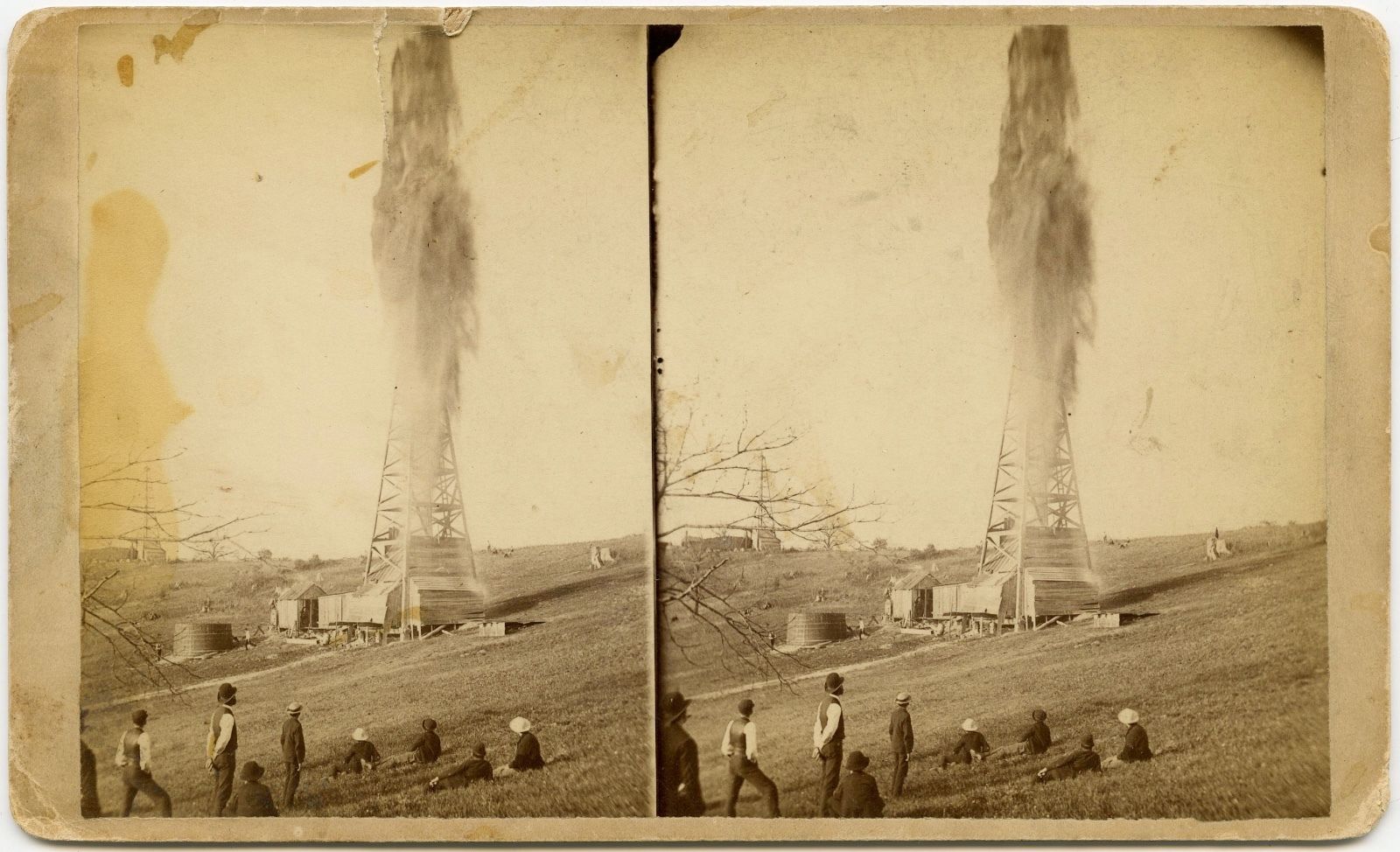 Title (ebay affiliate link): PENNSYLVANIA OIL FIELDS WELL GUSHING GROUP OF WATCHERS STEREOVIEW PHOTO