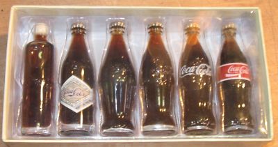 Title (ebay affiliate link): Evolution of the Coca Cola Contour Bottle 6 mini bottle