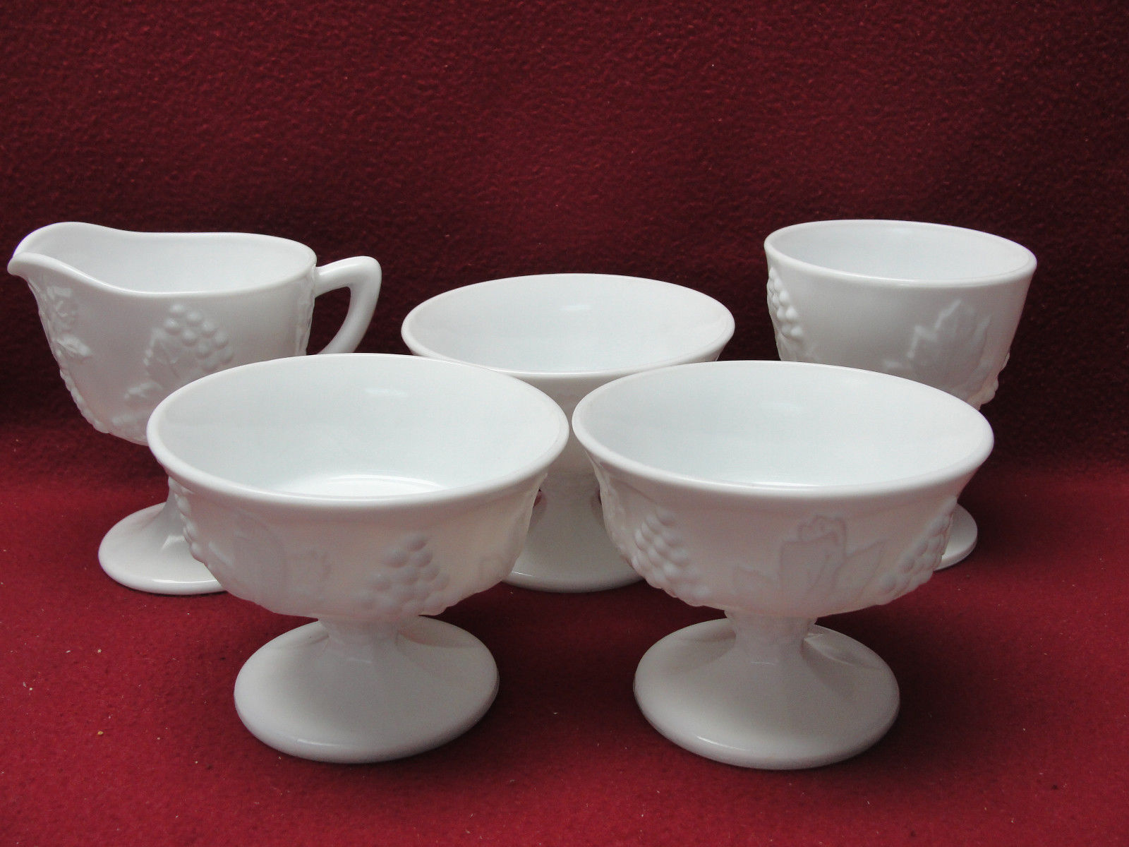 Title (ebay affiliate link): Lot of COLONY MILK GLASS - HARVEST Pattern (grapevine) - CREAMER, SHERBETS