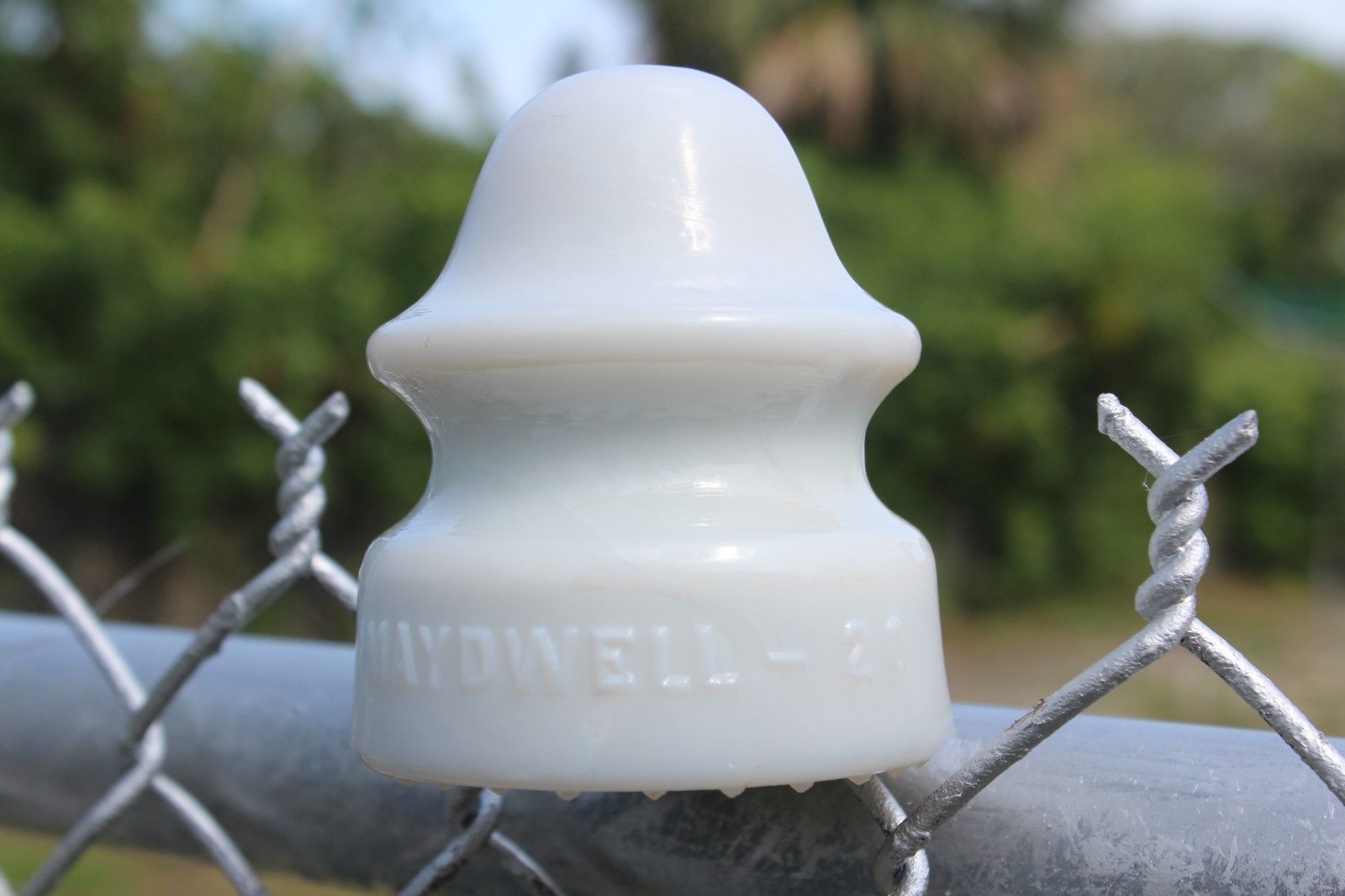 Title (ebay affiliate link): MAYDWELL - 20 white milk glass with amber sharp drip points glass insulator