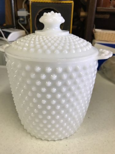 Title (ebay affiliate link): Vintage Hobnail Milk Glass Biscuit Cookie Jar Ice Bucket with Lid