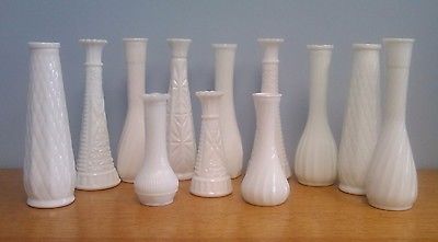 Lot of 12 Assorted Milk Glass Bud Vases