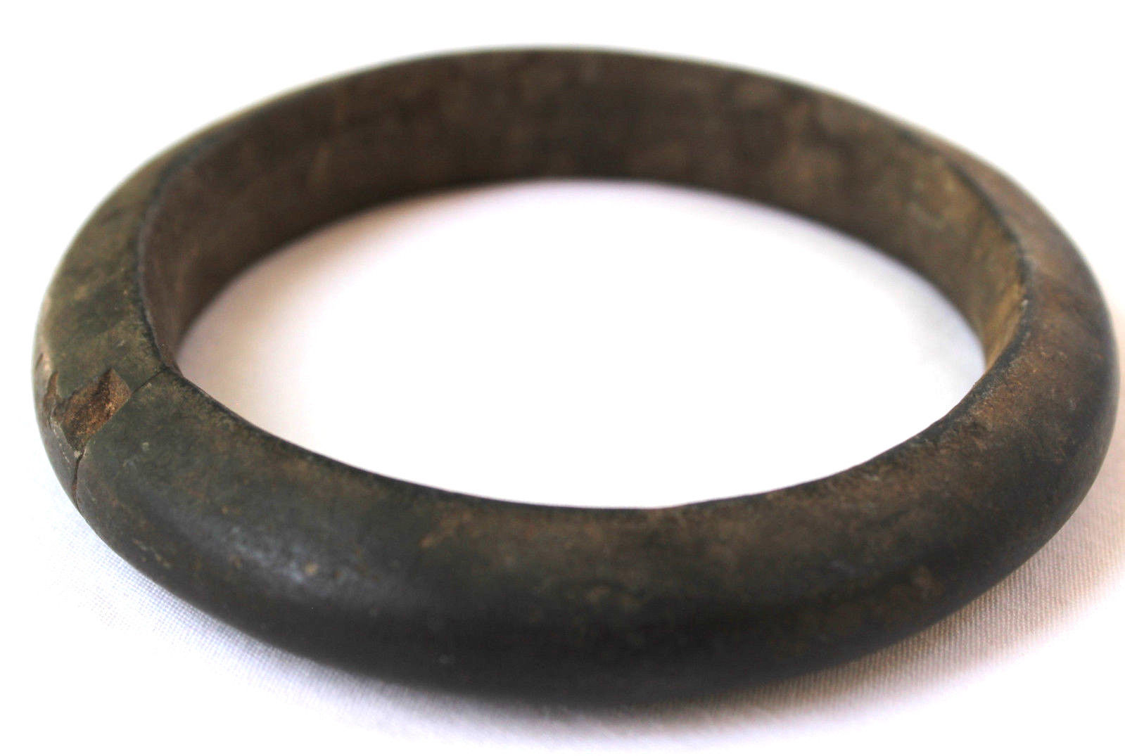 Pre-Columbian Mayan/Olmec Carved Black Stone Man''s Bracelet Bangle Armband