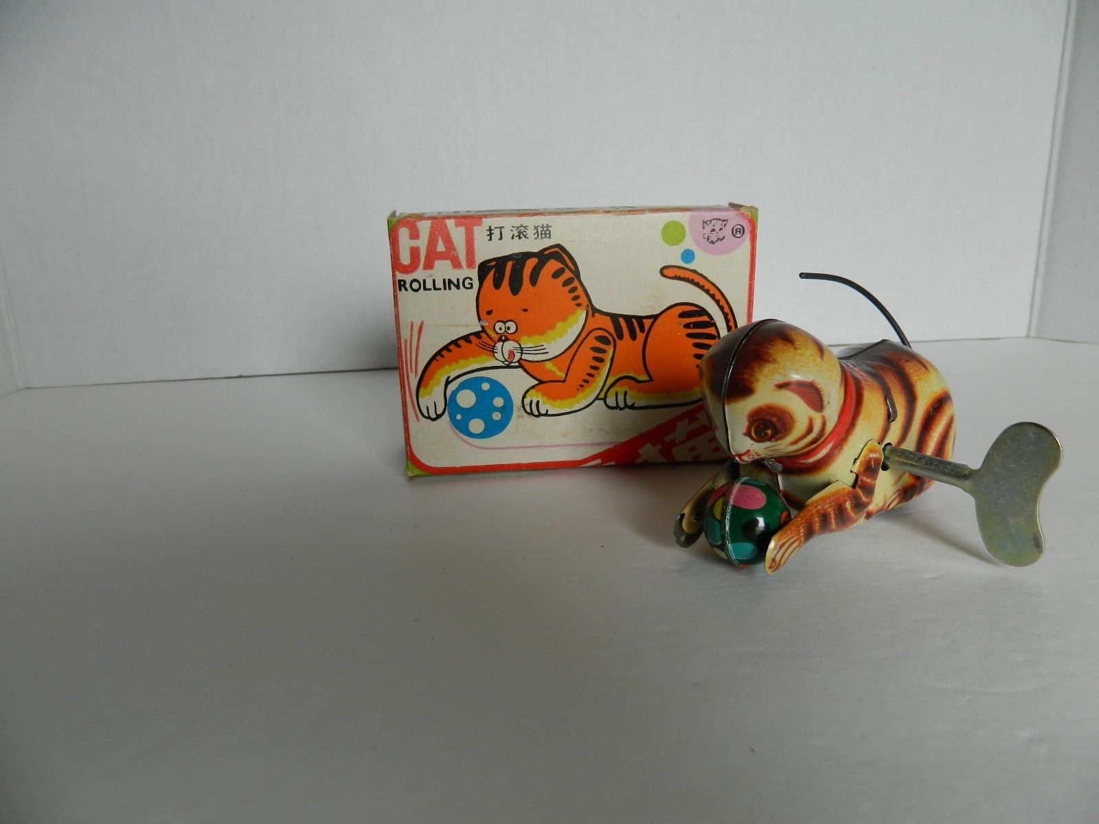 VINTAGE KEY WIND UP TOY BLIC ROLLING CAT METAL