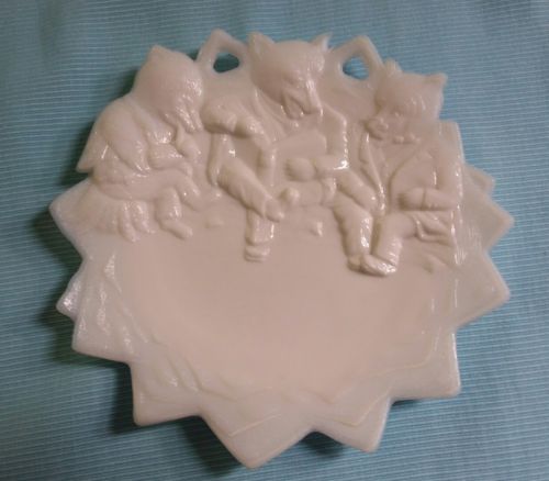 c)1905 Westmoreland Pressed Milk Glass~ Three Roosevelt Bears Plate - Teddy Bear