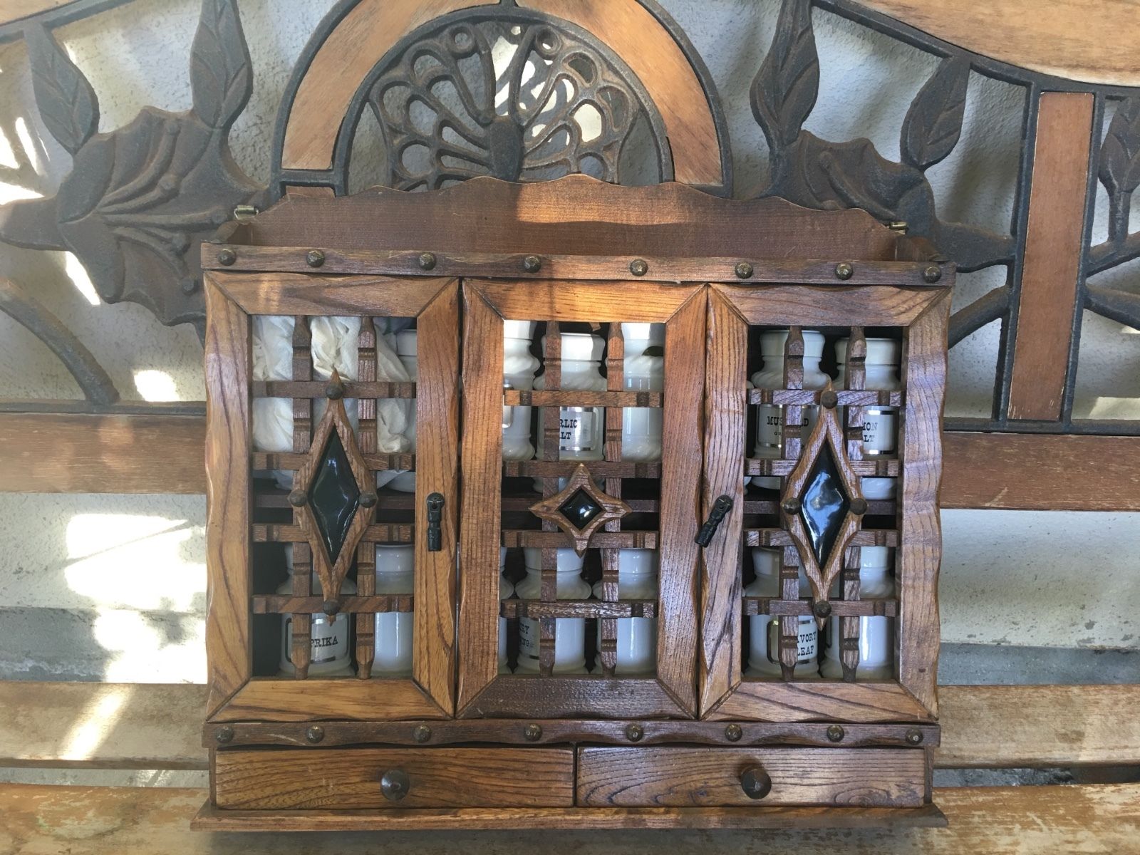 15 Vintage White Milk Glass Spice Jars Rope Shakers w/ rack small Cabinet