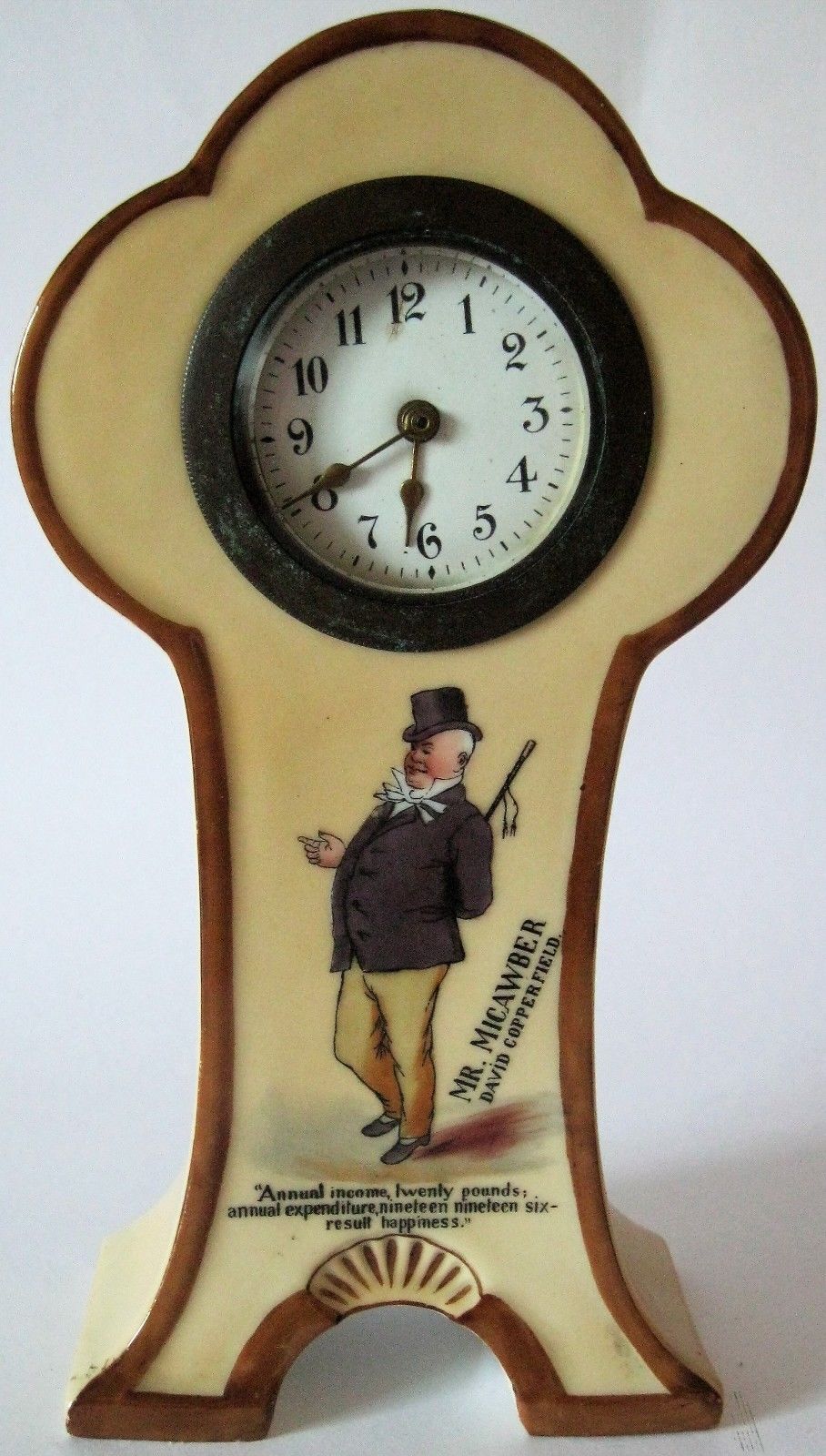 Title (ebay affiliate link): Antique Charles Dickens Mr.Micawber Ceramic Mantle Clock Good Working Condition