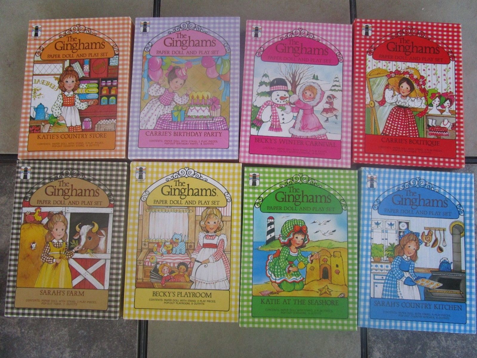 Title (ebay affiliate link): 8 VINTAGE PAPER DOLLS & PLAYSETs THE GINGHAMS Cut BECKY Katie CARRIE Sarah