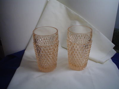 Title (ebay affiliate link): Set of 2 Pink depression glass Diamond Point tumbler.